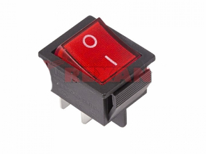 Выключатель клавишный 250V 16А (4с) ON-OFF красный с подсветкой предназначен для коммутации электрических цепей переменного тока напряжением до 250В. Клавишные (Рокерные) выключатели применяются в качестве комплектующих изделий различного электрооборудования (в сетевых фильтрах и удлинителях, аудио-оборудовании, блоках питания, электроустановках на различных производствах, автомобилях, и многих других местах). Такой клавишный переключатель имеет два положения. Принцип действия основан на перемещении клавиши в одну из позиций. Для переключения в нужное положение требуется приложить некоторые усилия на клавишу. Монтаж осуществляется без применения винтов на плоских панелях толщиной от 0.8мм до 3мм. Подключение контактов осуществляется плоской клеммой 6.6мм, либо с помощью пайки. Основные характеристики: Номинальное напряжение: 250В; Предельное напряжение: 1500VАС не более 1 минуты; Номинальный ток: 16A (250VAC); Контактное сопротивление: не более 35 мОм; Тип переключения: ON-OFF; Количество контактных групп: 2;