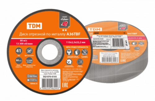 В нашем магазине «Главэлектрика» в Красноярске - Советском, вы можете приобрести товар: «Диск отрезной по металлу 115 х 2,5 х 22,2, тип 41, A36TBF, серия "Рубин", TDM SQ1070-0105» с доставкой по г. Красноярск - Советский.