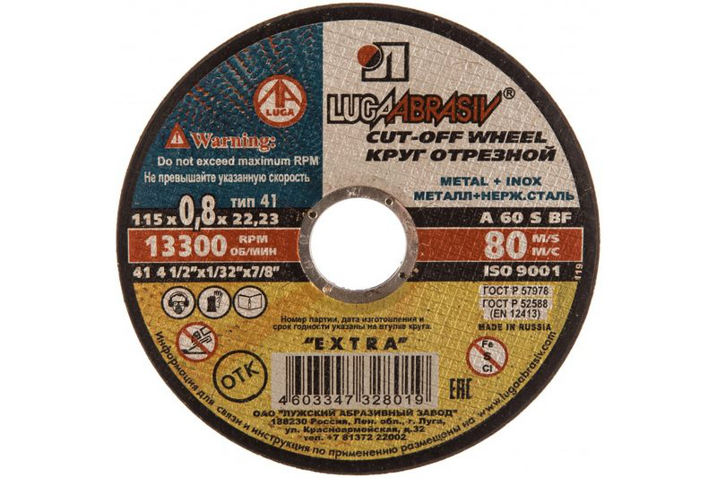 Круг отрезной по металлу, 115 х 0,8 х 22 мм (Луга)// Россия - это высококачественный отрезной диск, предназначенный для работы с металлическими поверхностями. Изготовлен из прочного материала, обеспечивающего долгий срок службы и эффективную работу. Имеет диаметр 115 мм, толщину 0,8 мм и посадочное отверстие 22 мм. Произведен в России компанией Луга, известной своим качественным инструментом. Подходит для использования как в профессиональных целях, так и для домашнего использования.