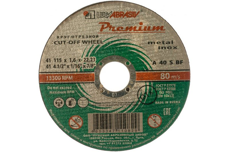 В нашем магазине «Главэлектрика» в Красноярске - Советском, вы можете приобрести товар: «Круг отрезной по металлу+нерж. 115 х 1,6 х 22 мм, ПРЕМИУМ (Луга)// Россия» с доставкой по г. Красноярск - Советский.