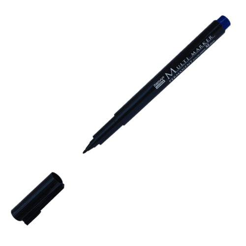 MARVY Маркер перманентный Multi Marker для всех поверхностей 0,8-1 мм синий MAR2600M/3 - это высококачественный маркер, предназначенный для использования на различных поверхностях. Он имеет тонкую кисть с диаметром письма от 0,8 до 1 мм, что позволяет создавать четкие и точные линии.Этот маркер обладает перманентными чернилами, которые быстро высыхают и не размазываются. Они обеспечивают стойкость цвета и защиту от выцветания, что делает этот маркер идеальным выбором для использования на различных поверхностях, включая бумагу, картон, пластик, стекло, металл и ткань.