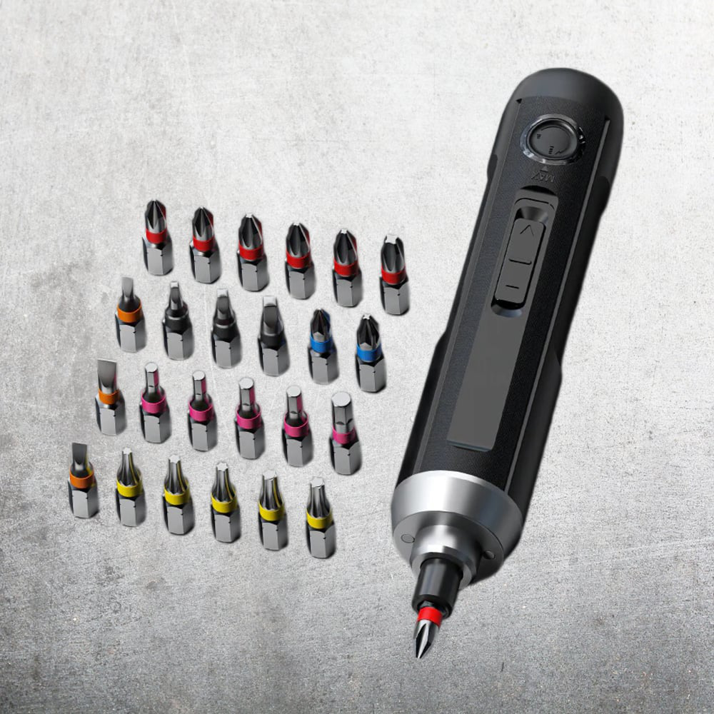 Аккумуляторная отвертка с прямой ручкой DELI DL-DP04-E1B2 102989 используется для завинчивания крепежных элементов, при сборке мебели, компьютеров и прочих мелких бытовых работ.Светодиодная подсветка и магнитный держатель-удлинитель позволяют работать в тёмных, труднодоступных местахОбладает эргономической рукоятью с перфорацией и функцией реверса для удобства работыБлагодаря универсальному USB Type-C разъему зарядить отвертку можно практически в любом местеВ комплект входят 24 биты маркированные различными цветами для быстрого подбора оснастки под нужную расходкуОснащена четырёхступенчатой регулировкой крутящего моментаПродуманная система хранения - отвертка, держатель-удлинитель, биты и кабель хранятся в прочном, удобном кейсе.
