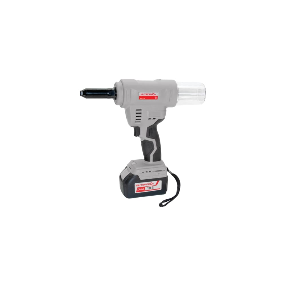 Вытяжной аккумуляторный пистолет Интерскол ВПА-6/18В 646.1.0.70 применяется для установки вытяжных заклепок размером от 2,4 до 6.4 мм. Благодаря высокому усилию отличается хорошей производительностью и может работать практически с любой расходкой.Подсветка оптимально освещает рабочую область.Сбор штоков от заклепок производится в специальную емкость.Бесщеточный двигатель надежен в эксплуатации и требует минимального обслуживания.Удлинённый «носик» пистолета облегчает установку заклёпок в труднодоступных местах.