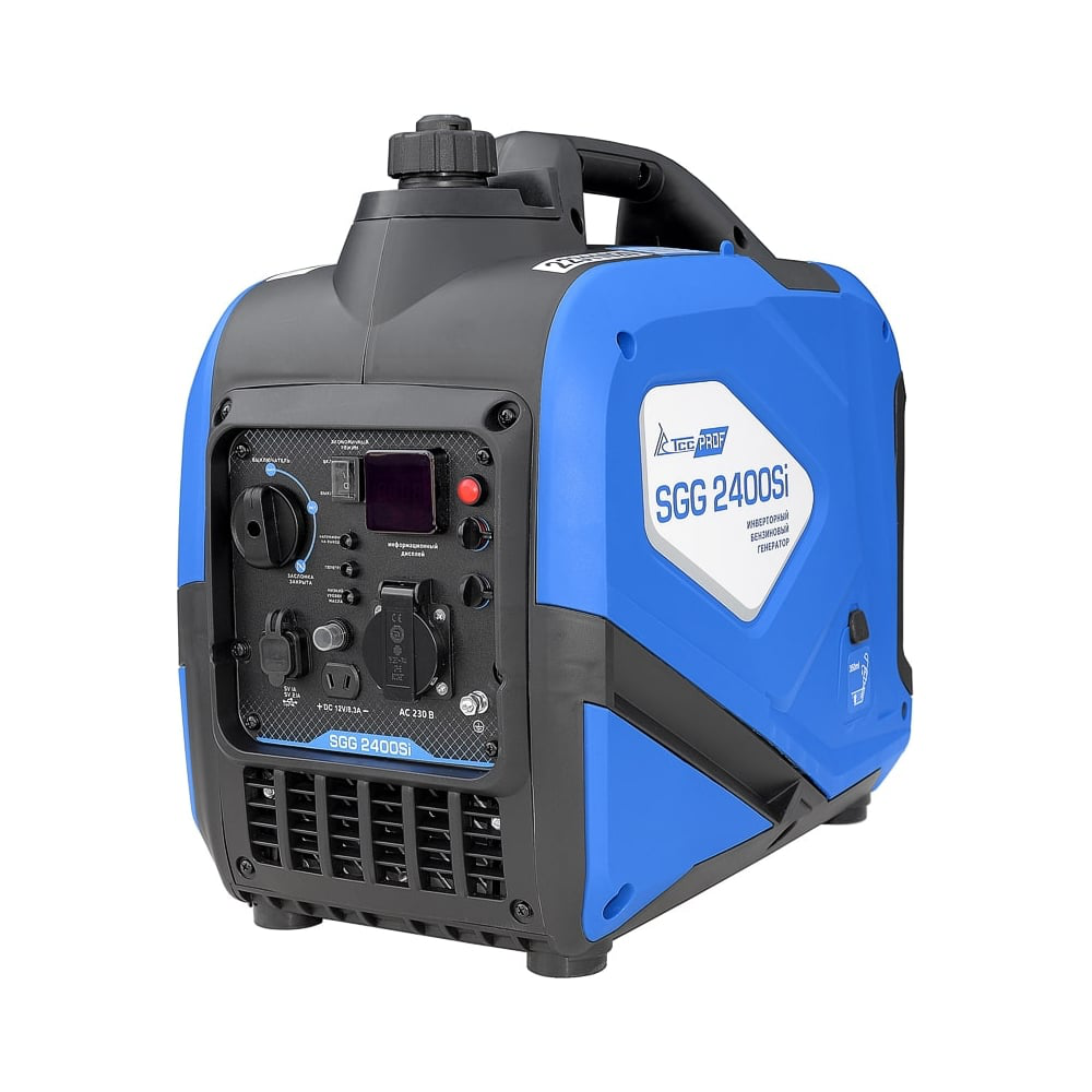 Инверторный бензогенератор ТСС SGG 2400Si 060028 в шумопоглощающем кожухе, предназначен для подключения к нему потребителей тока общей максимальной мощностью до 2,4 кВт. Переносной компактный инверторный генератор предназначен для питания электроприборов, на загородном участке, в походе, на рыбалке. Благодаря использованию этой модели инверторного преобразователя, на выходе получается стабильный ток, без каких-либо скачков, генератор способен регулировать работу двигателя в зависимости от нагрузки: к примеру, если нагрузка составляет половину от выходной мощности, то и мощность двигателя снижается вдвое; это дает значительную экономию топлива. Инверторные модели получаются более легкими и компактными, чем традиционные генераторы. Благодаря двигателю, специально разработанному под инверторный генератор и особенной конструкции корпуса, удалось значительно понизить уровень шума. Инверторный генератор считается оптимальным выбором для нагрузки, чувствительной к качеству тока — такой, как аудиотехника или телевизор. Система перевода двигателя в экономичный режим Индикаторы на панели показывают параметры напряжения, превышение мощности генератора, низкий уровень масла. Медная обмотка альтернатора Защита от короткого замыкания, перегрузки и низкого уровня масла Шумозащитный кожух Антивибрационные резиновые ножки Экономичный расход топлива (при 75% мощности 1 л/ч) Стабильный ток для точных приборов