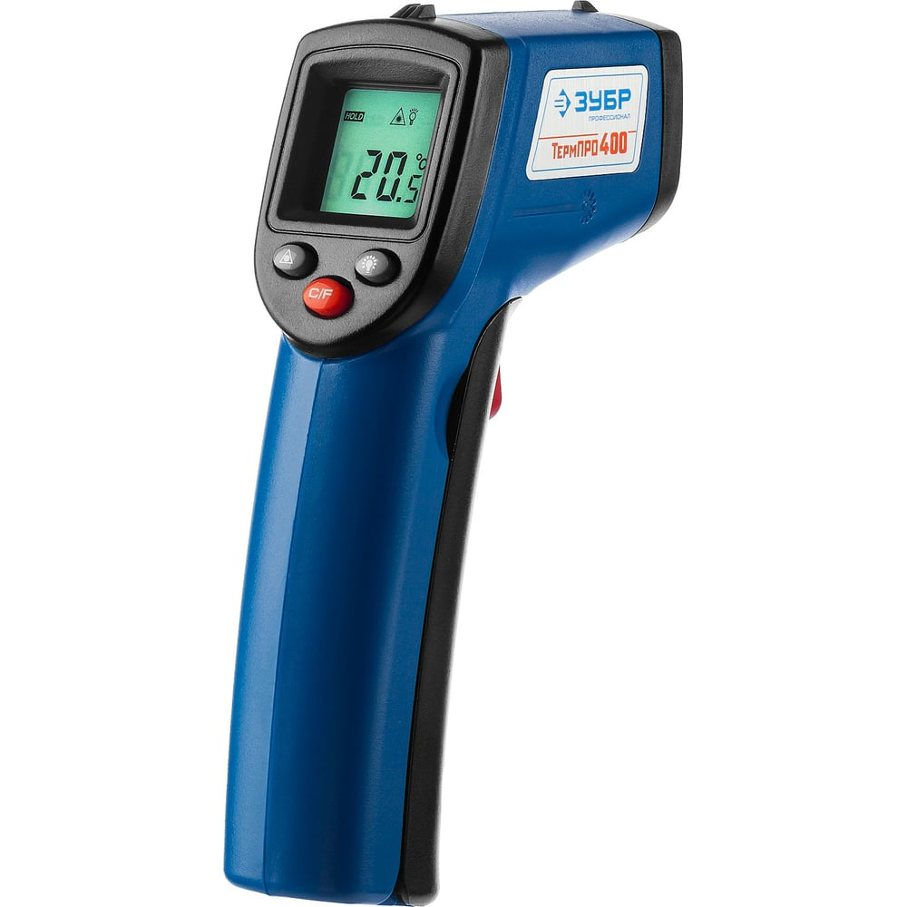 Инфракрасный пирометр Зубр ТермПро-400 ПРОФЕССИОНАЛ 45725-380 помогает определить температуру различных объектов и поверхностей на расстоянии. Принцип действия пирометра базируется на том, что все материальные тела излучают электромагнитную энергию, а интенсивность и спектр излучения этой энергии напрямую зависит от их температуры. Пирометр определяет характеристики электромагнитного излучения и на их основании автоматически вычисляет, до какой температуры нагрет объект измерения. Отличается высоким быстродействием - время измерения занимает всего 0.5 секунд. Лазерный указатель обеспечивает более точное наведение на цель. Рукоятка с рифленой поверхностью способствует надежному удержанию прибора в руке. В случае бездействия пирометр автоматически отключается, позволяя экономить заряд элементов питания.