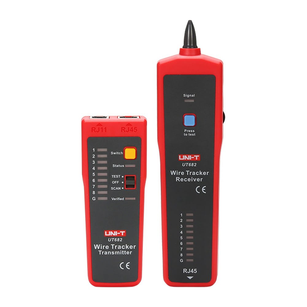 Тестер проверки проводов UNI-T UT682 состоит из передатчика и приемника. Он используется для проверки телефонных проводов, сетевых проводов, кабелей. Инструмент удобен для установки и обслуживания сетей с линиями передач данных. Особенности тестера UT682: Индикатор уровня сигнала; Индикация низкого заряда батареи; Индикация полярности для телефонных линий; Защита входного напряжения передатчика; Отслеживание телефонных, Ethernet и силовых кабелей; Регулировка громкости; Подключение гарнитуры; Проверка последовательности проводки кабеля; Режим двойного цикла измерения; Слежение за обрывом провод; Трассировка проводов распределительного щита в реальном времени.