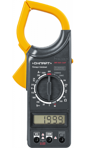 Токовые клещи ОНЛАЙТ OMT-Kt01-266F 82979 используются для проведения широкого спектра измерений электротехнических параметров сети и приборов при электромонтажных работах в быту и на производстве. Осуществляют измерение переменного тока без разрыва электромагнитной цепи. Благодаря функции HOLD можно зафиксировать на дисплее только что измеренное значение.