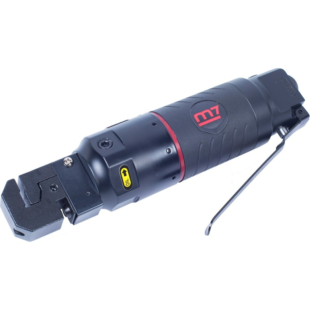 Пневматический дырокол кромкогиб MIGHTY SEVEN PN-150 - компактный агрегат, который используется в авторемонтных мастерских и станциях технического обслуживания. Дырокол прекрасно справляется с перфорацией и загибом кромки металлических листов. Устройство имеет широкую и удобную для работы клавишу управления. Благодаря небольшому весу обеспечивается легкая транспортировка приспособления.