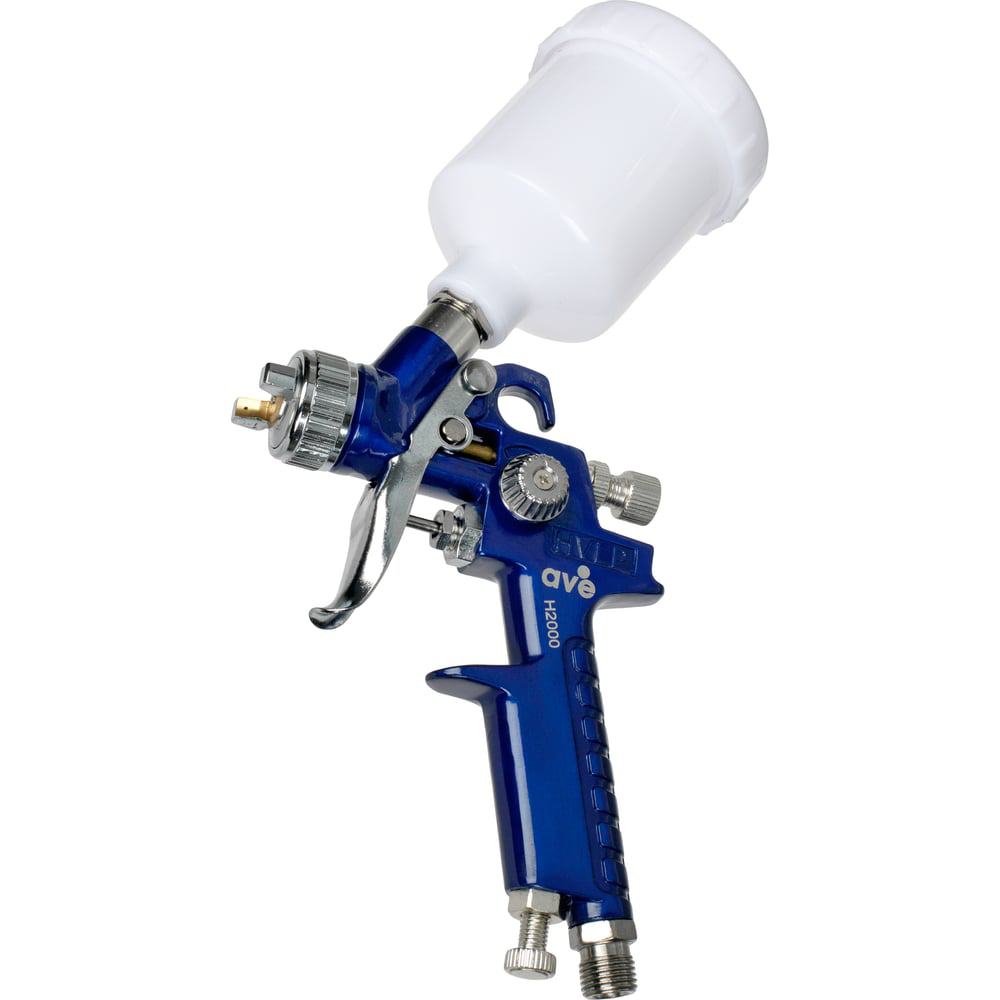 Мини-краскопульт AVE H-2000 0,8 Применяется для покрасочных работ. Верхнее расположение бачка позволяет использовать его в полном объеме. Металлический корпус устойчив к механическим повреждениям. Технология HVLP обеспечивает высокий коэффициент переноса материала на поверхность. Рукоятка с упором удобна для удержания. Преимущества AVE H-2000 Ударопрочная конструкция Внушительный рабочий ресурс Устойчивость к перегрузкам и перегреву Возможность длительной работы AVE H-2000 без остановки Низкая пожаро- и взрывоопасность рабочего процесса Комплектация