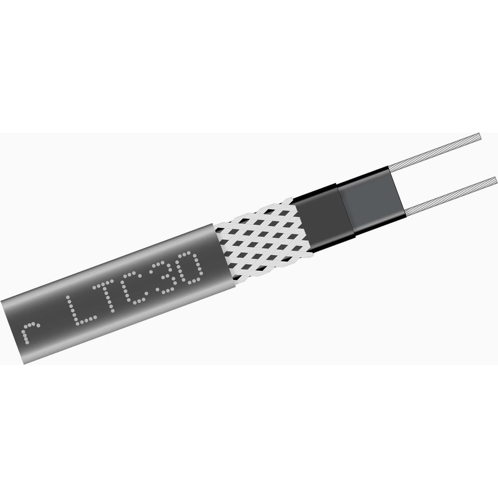 Саморегулирующийся нагревательный экранированный кабель параллельного типа универсального назначения для общестроительного применения на небольших объектах, где не требуются протяженные участки обогрева (максимальная длина подключаемого отрезка кабеля = 25 метров). Применяется в системах антиобледенения водосточных систем кровель зданий, а также для защиты от замерзания и поддержания заданной температуры трубопроводов и резервуаров, не подвергаемых пропарке.Саморегулирующийся нагревательный кабель «Grand Meyer» типа LTC30 - это овальный электрический нагреватель с параллельными проводниками. Полупроводящая саморегулирующаяся матрица наносится на лужёные оловом медные шины (0,5мм²), состоящие из большого количества скрученных проволок. Тепловыделяющим элементом нагревательного кабеля является сама матрица, меняющая тепловыделение в зависимости от температуры окружающей среды.Слой внутренней изоляции из модифицированного полиолефина, нанесенный на тепловыделяющую матрицу, обеспечивает диэлектрическую стойкость, влагоустойчивость, защиту от ударных нагрузок и истирания, а так же защиту от химического воздействия для тепловыделяющей матрицы.Кабель защищен экраном из проволок, который обеспечивает механическую защиту тепловыделяющей матрицы и обеспечивает надежное заземление по всей длине кабеля.Внешняя изоляция из модифицированного полиолефина обладает химической прочностью, что позволяет использовать нагревательный кабель во влажных или коррозийных средах.