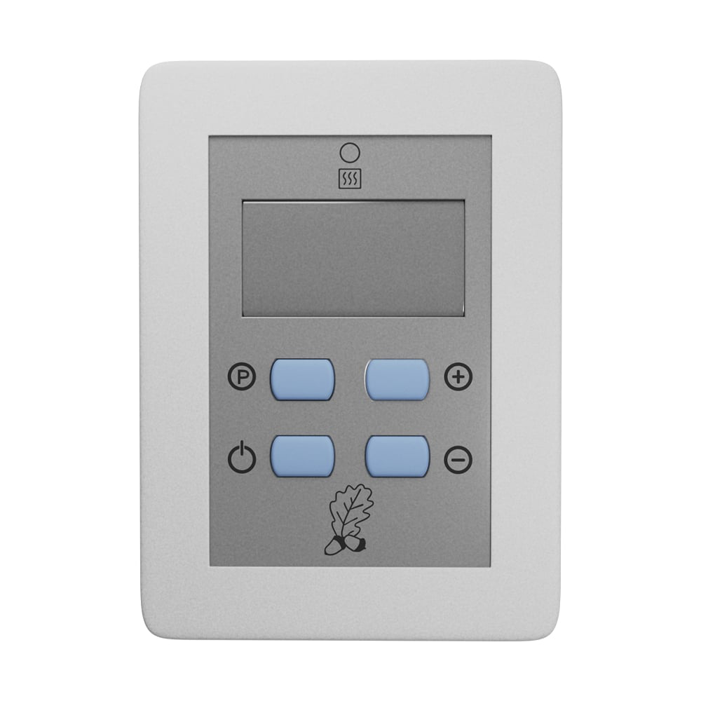 Пульт управления для электрокаменки VVD ПУ-04 М 2,25-6,25/220 кВт электронный блок ПУ, силовой блок ПУ 260x210x100мм 9850 представляет собой пластиковый корпус, на лицевой поверхности которого, размещены текстовый информационный экран и кнопки управления. Пульт управления включает в себя: Цифровой измеритель температуры. Терморегулятор с диапазоном регулирования от +30 до +125°С. Контур управления включением и выключением. Пульт управления обеспечивает: Автоматическое полное отключение устройства, если с момента последнего воздействия на элементы управления ПУ прошло более 6 часов (заводские установки). Автоматическое включение и выключение в соответствии с заданной на пульте температурой в парильном помещении При нажатии кнопки на пульте «Р» попеременную индикацию текущей температуры и влажности. Светодиодную индикацию работы.