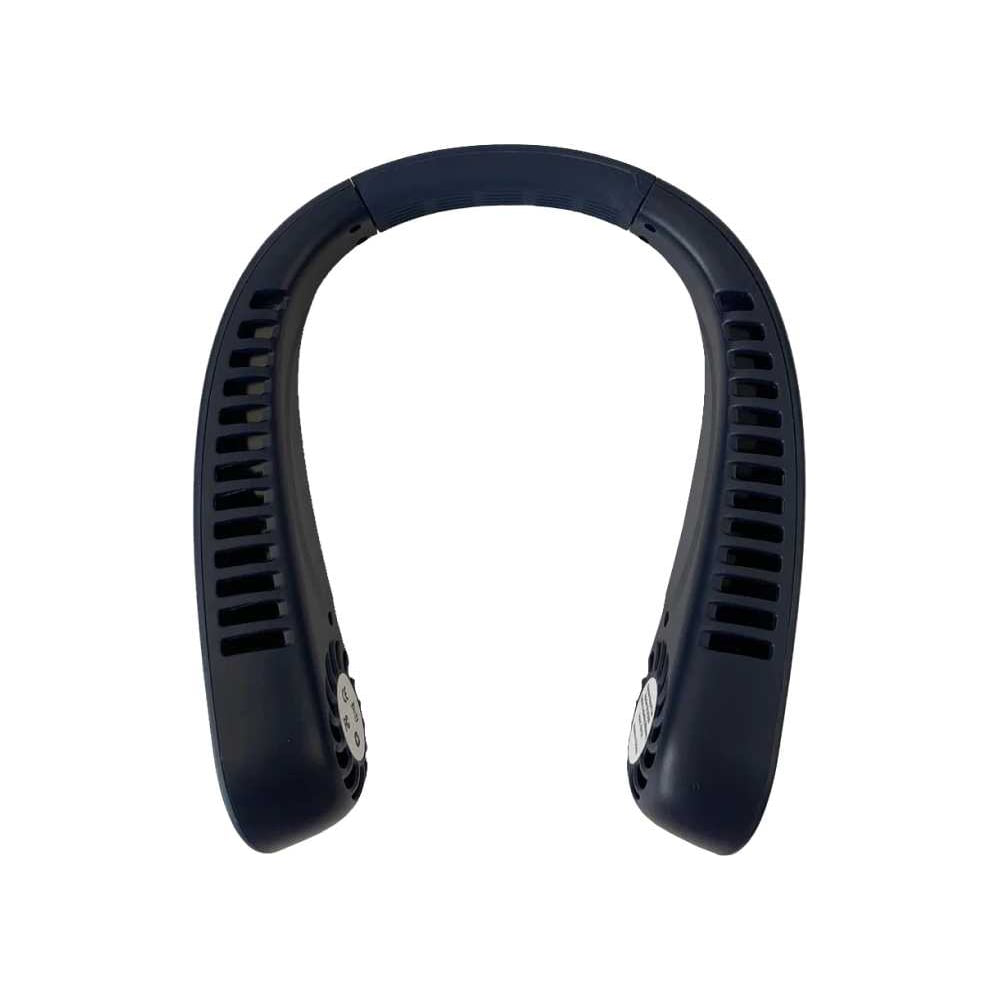 Портативный вентилятор на шею, 3 режима скорости. Объёмный поток воздуха на 360 градусов. Цвет темно-синий. Регулировка угла наклона. Механическое управление.