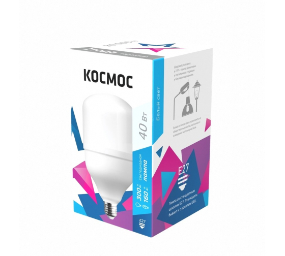 Лампа светодиодная Космос 40Вт 220В с цоколем Е27 и размерами D100х189 мм. Свет лампы имеет цветовую температуру 4500K и яркость 3650 лм. Модель LksmHWLED40WE2745 отличается высокой эффективностью и долгим сроком службы, что делает ее идеальным выбором для освещения помещений любого типа.