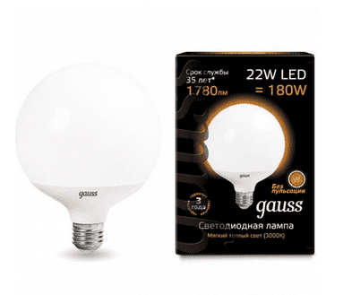 В нашем магазине «Главэлектрика» в Красноярске - Советском, вы можете приобрести товар: «Лампа светодиодная Gauss LED G125 E27 22W 1780lm 3000K » с доставкой по г. Красноярск - Советский.