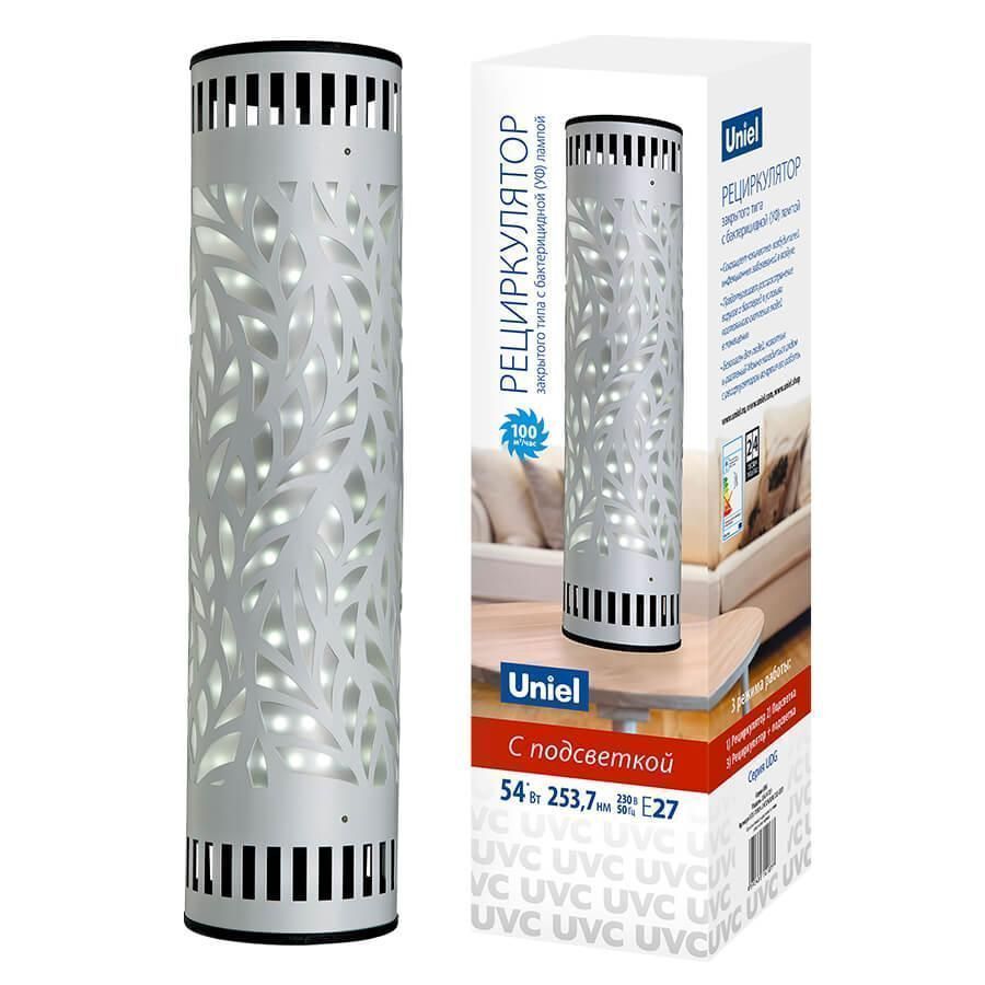 Расширенная гарантия на товар составляет 2 года. поставщик рекомендует использовать лампы накаливания с цоколем E27 для освещения площади 3 м2. Ультрафиолетовый бактерицидный рециркулятор Uniel UDG-V100A UVCB/6500K D02 Grey UL-00007985 в современном стиле используется в интерьере Для офиса с установкой На стол.