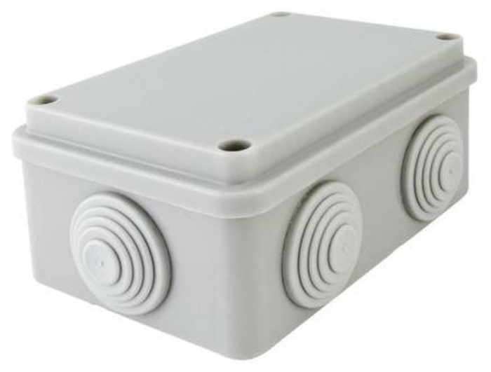 Распаячная коробка ОП 120х80х50мм с крышкой, предназначена для защиты электрических соединений от влаги и пыли (IP55). В коробке имеется 6 входов для проводов. Каждый вход оборудован индивидуальным штрихкодом для удобной идентификации. Продукт отлично подходит для использования в различных условиях, где необходима надежная и защищенная коробка для электрических соединений.