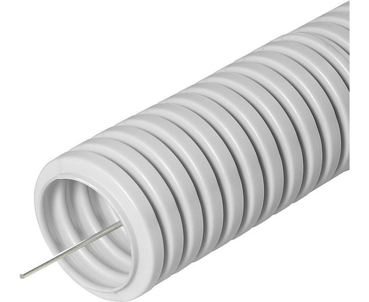 Труба ПЛЛ гофрированная легкая 350 Н безгалогенная (HF) негорючая (НГ) белого цвета с защитным слоем, диаметром 25 мм. Длина одного катушки - 50 метров, 2600 метров в упаковке на паллете. Продукт предназначен для использования в промышленных целях.