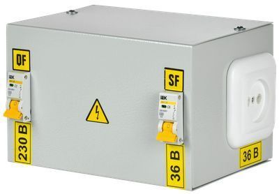 Предназначены для питания местного или ремонтного освещения, а также для подключения переносных светильников и инструмента. Ящики ЯТП имеют разборный металлический корпус, внутри которого установлены: - однофазный понижающий трансформатор ОСО-0,25 мощностью 250 Вт; - автоматические выключатели ВА47-29; - штепсельная розетка.