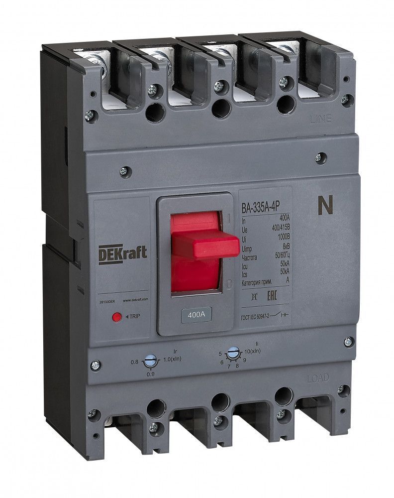 Продукт '28131DEK Силовой авт. выкл. 4P 250A 50кА ВА-335А' - это силовой автоматический выключатель, предназначенный для защиты электрических сетей от перегрузок и короткого замыкания.Данный автоматический выключатель имеет 4 полюса, что позволяет обеспечить защиту всех фаз и нулевого провода.