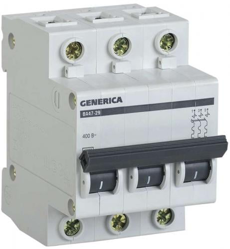 Автоматический выключатель IEK GENERICA 3P 10А (C) 4.5кА, MVA25-3-010-C является незаменимым компонентом в системах электроснабжения, гарантируя безопасность и надежность работы электрических сетей.