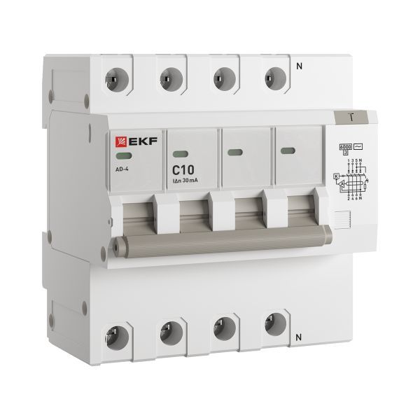 Дифференциальный автоматический выключатель АД-2(4) (S) EKF PROxima представляет собой аппарат, сочетающий функции автоматического выключателя с устройством защитного отключения. При обнаружении автоматическим выключателем в защищаемом участке сети тока утечки (повреждения) на землю или сверхтока (тока перегрузки или короткого замыкания) происходит срабатывание устройства, приводящее к отключению защищаемой сети. Особое отличие дифференциальных автоматов EKF – в наличии встроенного блока защиты от перенапряжения. АД-2 и АД-4 EKF PROxima выпускаются в стандартном и селективном (АД-2S, АД-4S) исполнениях.